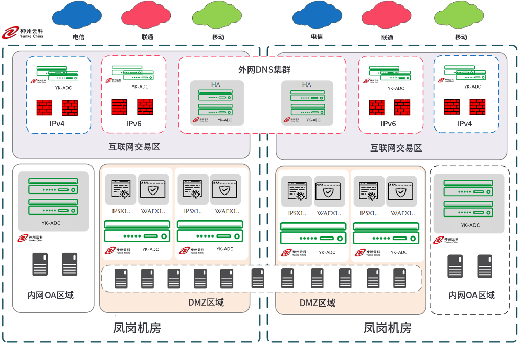 1、以神州9500金沙应用交付体系为基础构建的新型交付型同城双活数据中心架构,保证数据中心高可用、灵活、便捷扩展、双中心双活