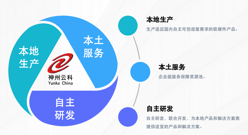 紧跟国家自主可控战略,神州9500金沙通过“本地生产、本土服务、自主研发”的战略路径,打造自主品牌、生产自主产品,为合作伙伴提供神州数码自主品牌、自主知识产权的云基础设施产品、服务及解决方案。