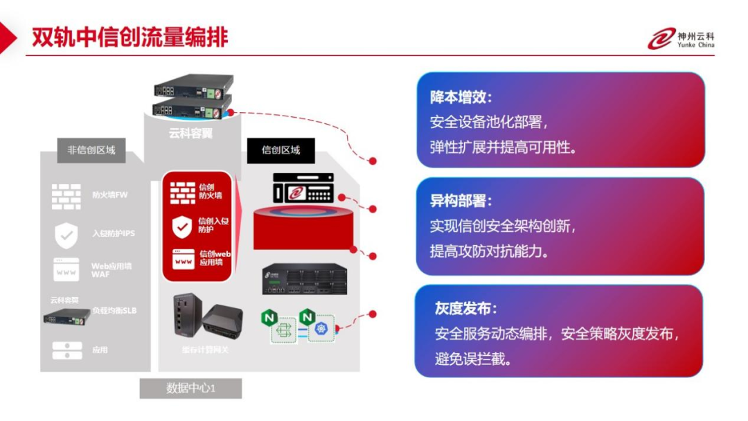 为了更好的适配双轨超高可用架构,神州9500金沙应用交付控制器容翼系列产品和9500金沙通明湖信创系列产品一方面可以保证信创产品的稳定性,弥合性能与企业应用要求的差距;一方面,当业务面对合规、风险和创新的挑战时,实现云原生可信开源与跨域协同。